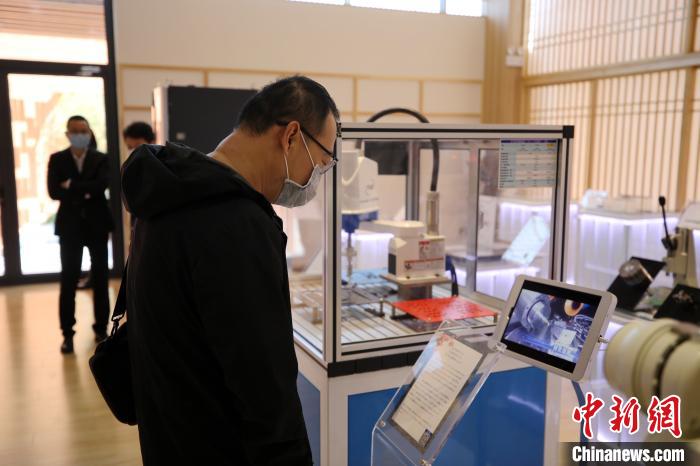 会上,日本企业展示的工业机械人吸引参会嘉宾驻足。 胡耀杰 摄