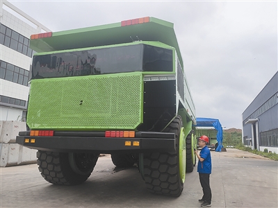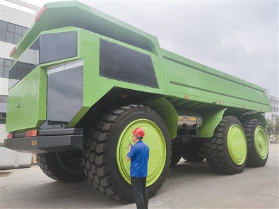 ¸ß5.4Ãס¢³¤13Ãס¢¿í4.5Ã×£¬×ÔÖØ110¶Ö¡¢ÔØÖØ150¶Ö£¬½öÒ»ÌõÂÖÌ¥¾Í¸ß´ï2.5Ãס¡ÔÚÖй¤¼Ê»ªÖع¤(Çൺ)ÓÐÏÞ¹«Ë¾³§ÇøÄÚ£¬Ó³Èë¼ÇÕßÑÛÁ±µÄÊÇÒ»¸öÅÓÈ»´óÎï¡£Õą̂¿óɽ³µÈ«Éí¿Æ¼¼·¶£º³µÉí³ÊdzÂÌÉ«£¬³µÍ·ÅäÒÔ˶´óµÄµç×ÓÆÁ£¬ÏÔʾµçѹ¡¢³µËÙ¡¢×°ÔØÁ¿¡¢»ØÀ¡¹¦ÂʵÈʵʱÊý¾Ý£¬³µÁ¾ÎÞаµØÇ°½øÍËÈ´¡¢¾ÙÉý·¶·£¬ËùÓвÙ×÷¾ùÔÚ¼¸°ÙÃ×ÍâµÄÔ¶³Ì²Ù×÷̨Íê³É¡¡